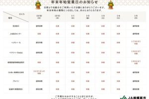 年末年始営業日のお知らせ