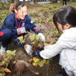 【広報取材】練習場で児童と選手がサツマイモ収穫 -