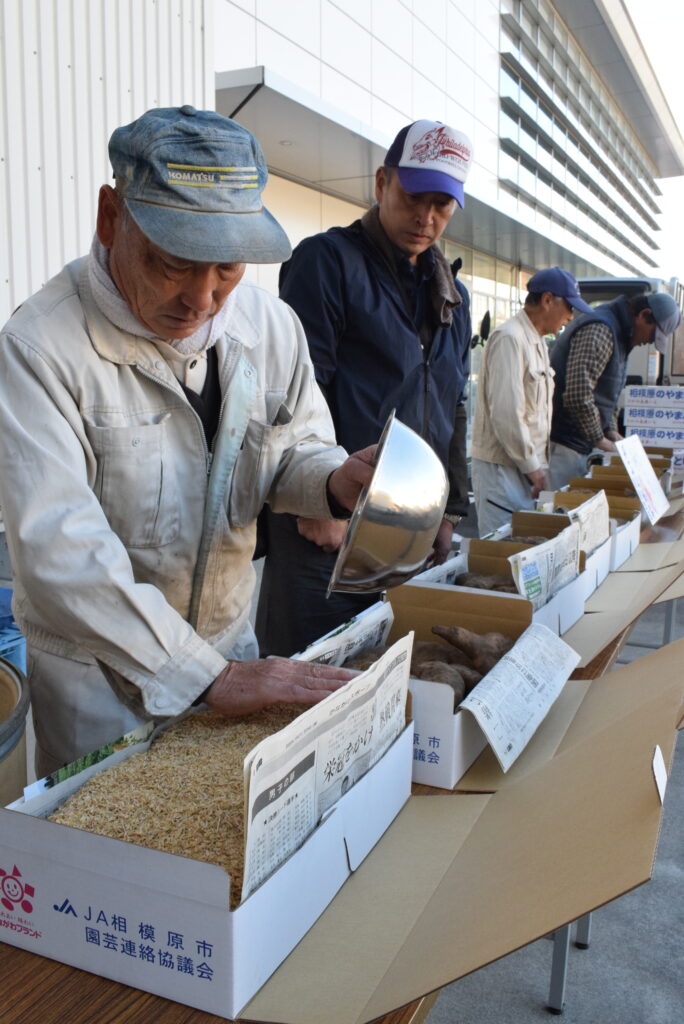 JA管内で、特産のヤマトイモの出荷が最盛期を迎えています。管内のヤマトイモは「さがみ長寿いも」の愛称で親しまれ、「かながわブランド」にも登録。暮れの贈答用としても重用されています。支店で生産者とJA職員が協力して作業に取り組む光景はこの時期の風物詩です。
