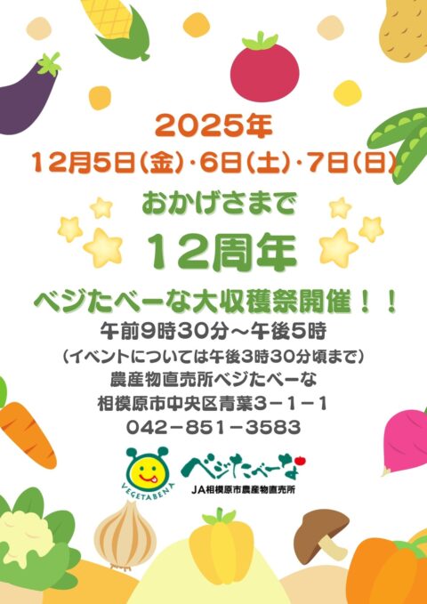 農産物直売所ベジたべーな12周年大収穫祭を開催します!!