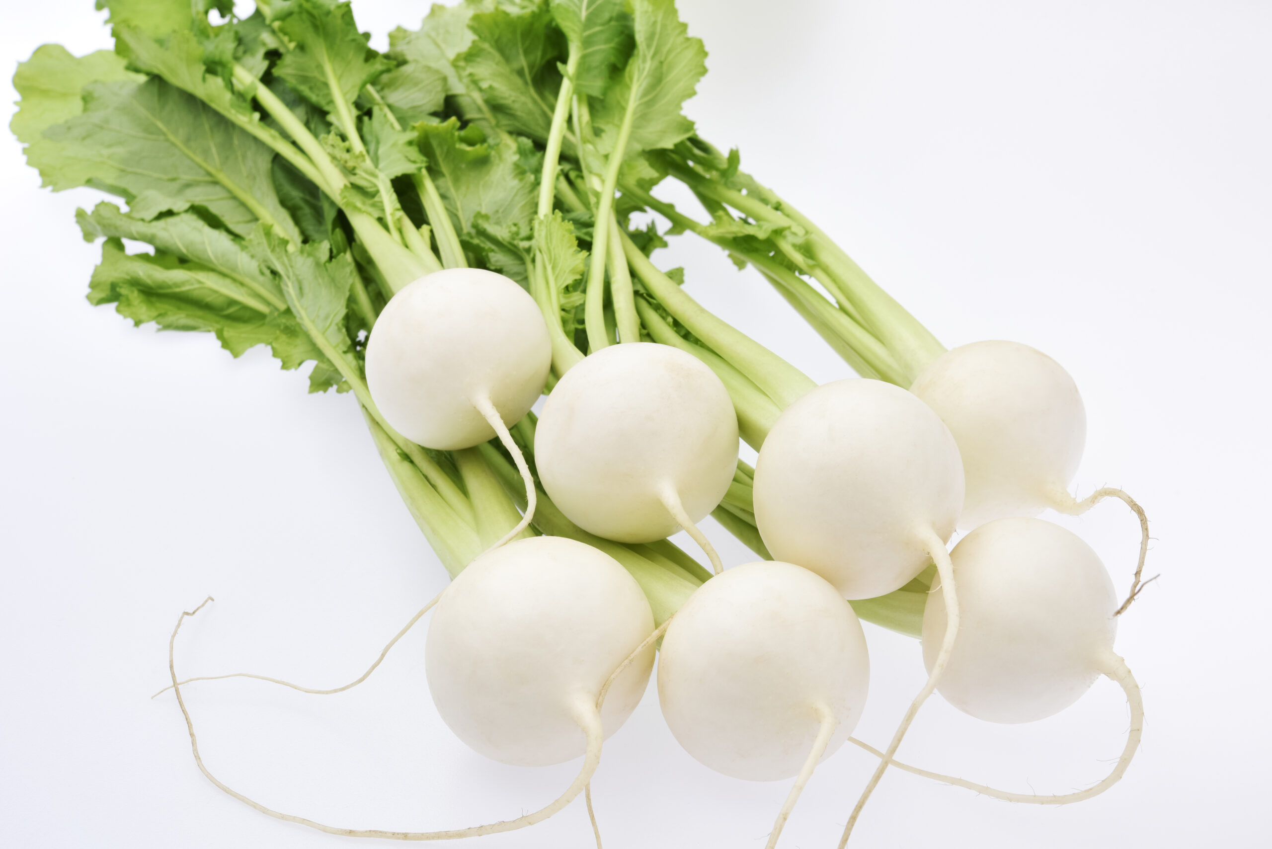 別名は春の七草の「すずな」。白い球型が多いが、赤や黄、紫色など、さまざまな色や形、大きさの品種がある。葉は浅漬けや炒めものなどに。