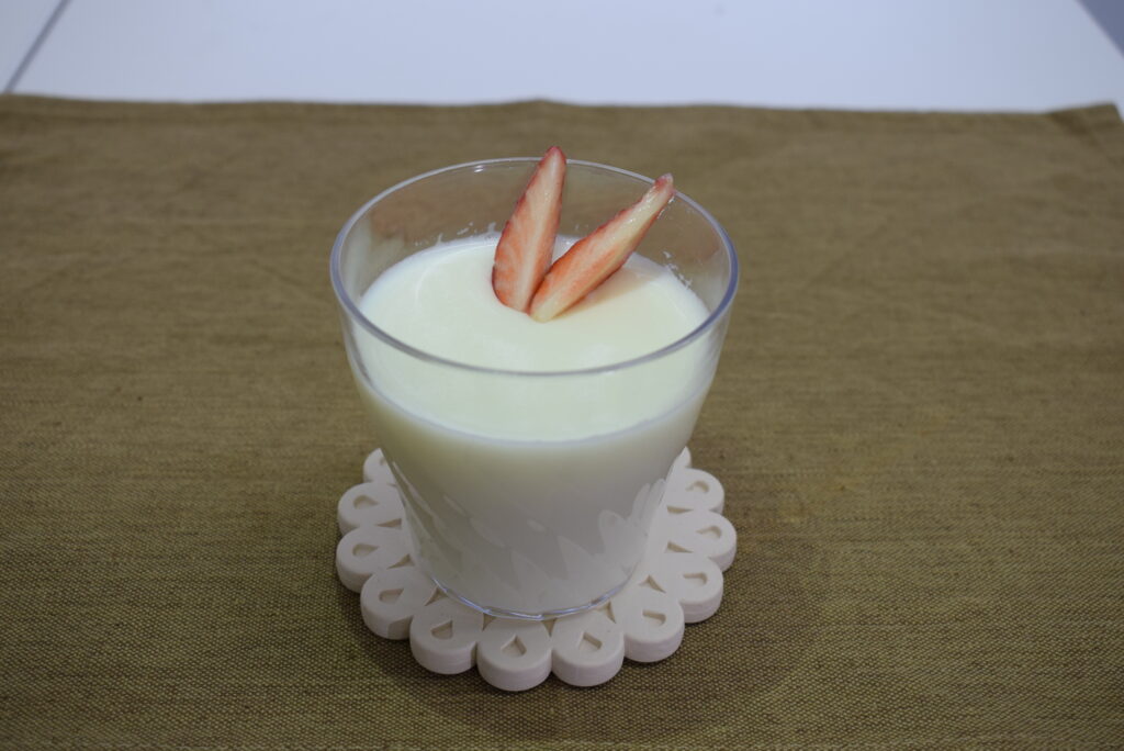 - 器に注ぎ入れラップをかけて冷蔵庫で2時間冷やしたら完成。